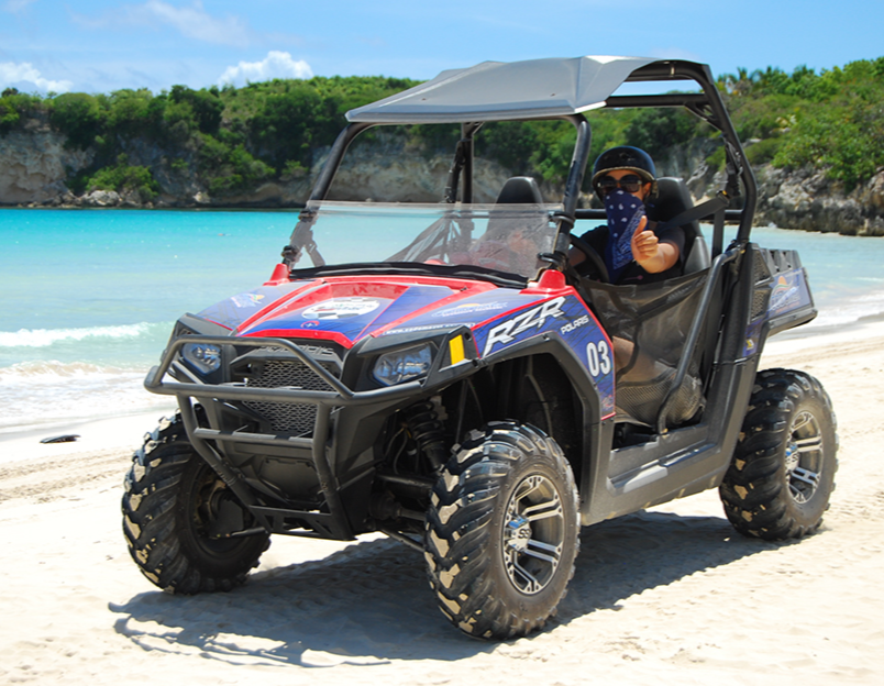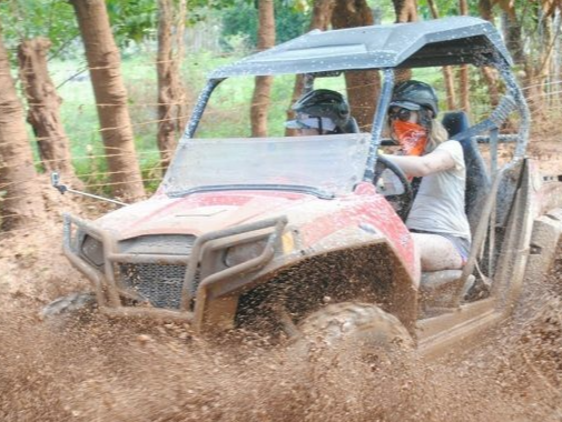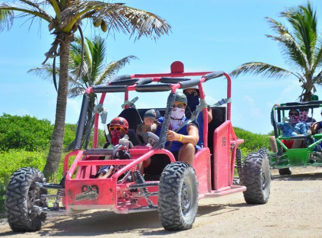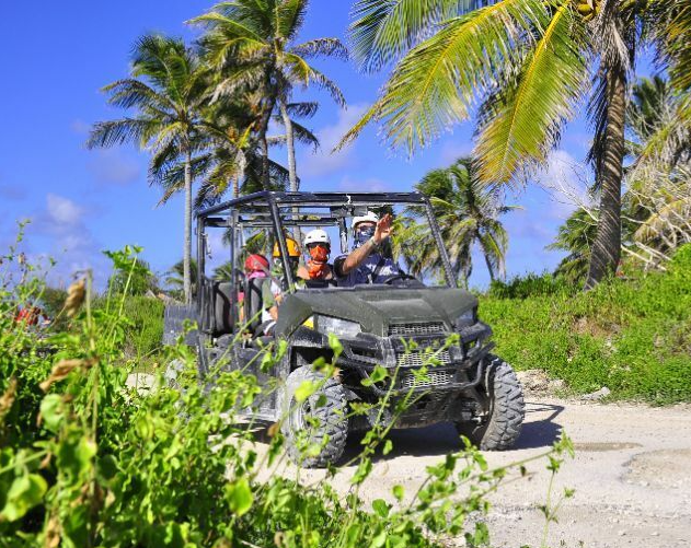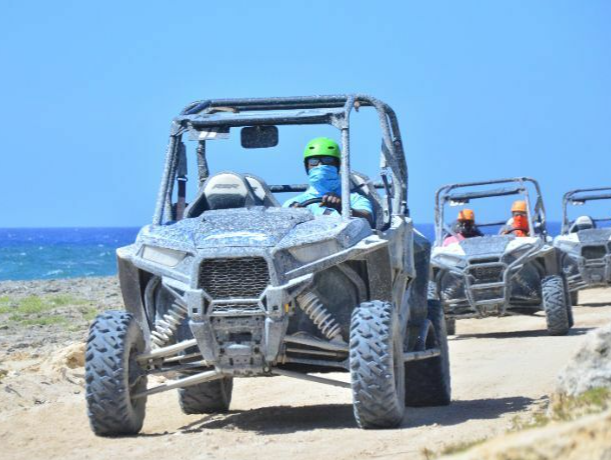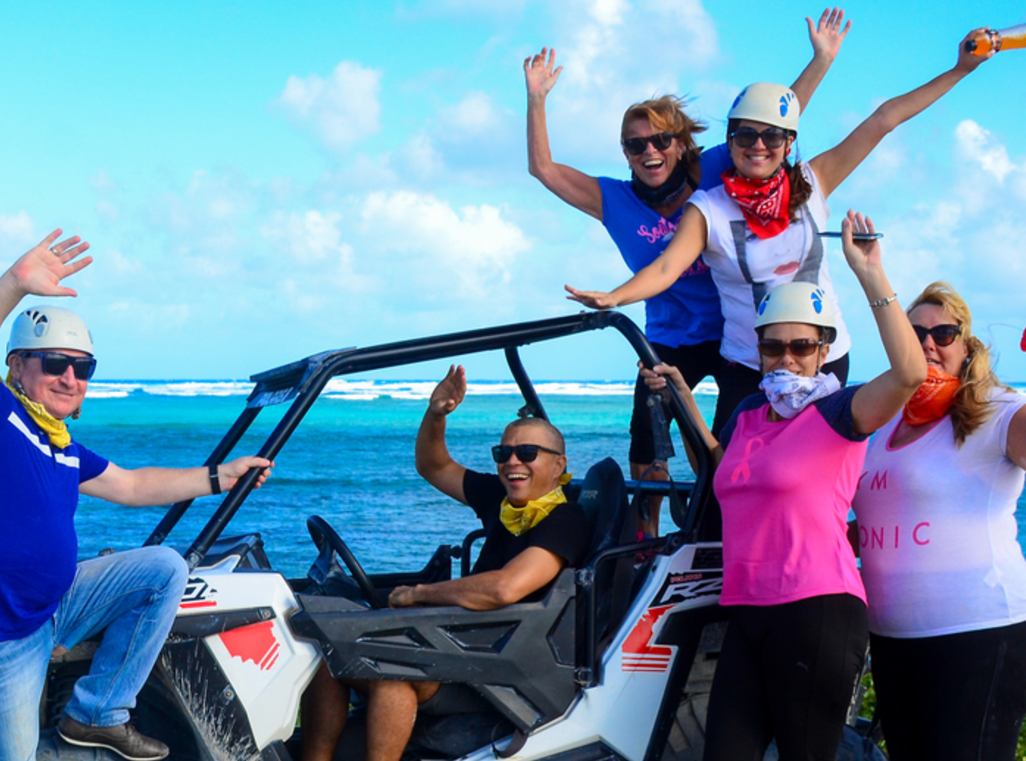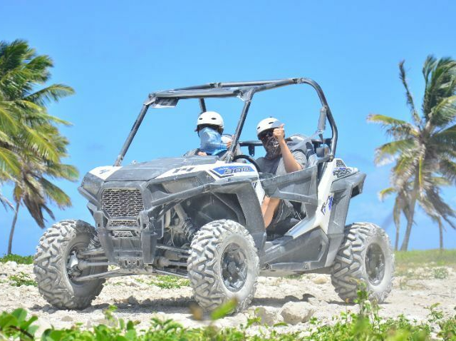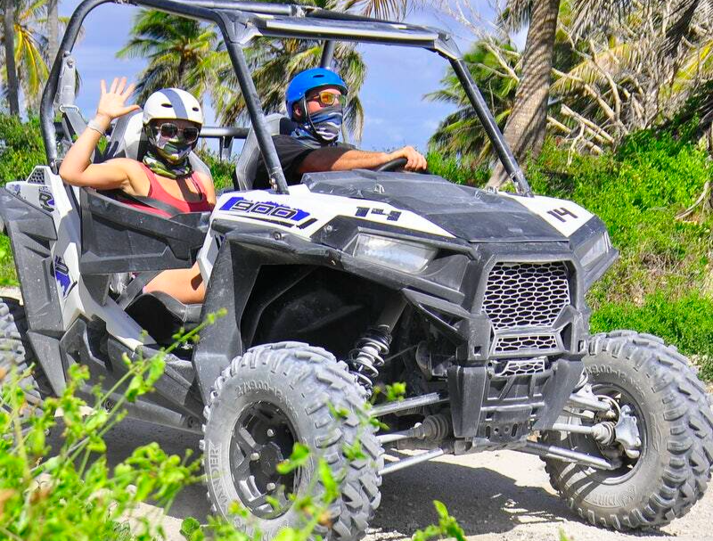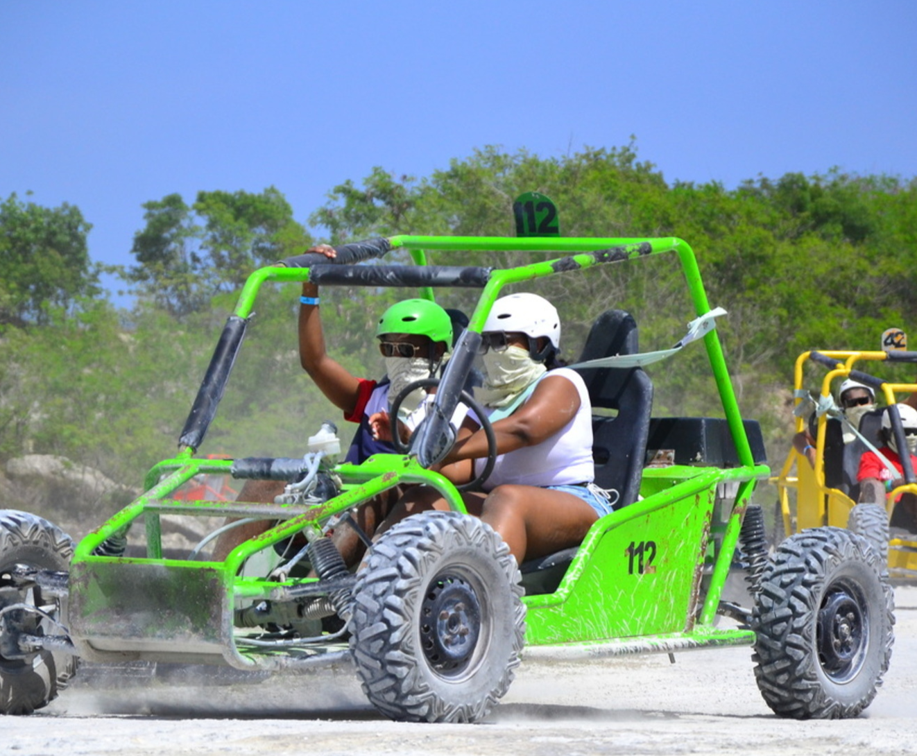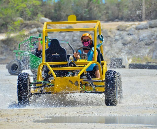 Set off on a fun-filled 2-hour off-road Buggy tour through Cabo Engaño. The buggy tour is completely off-road, with no public roads taken and maximally safe. Visit Cabo Engaño, the easternmost point where the Atlantic Ocean meets the Caribbean Sea. Pump up your adrenaline to the max with an exclusive circuit in an abandoned mine. Visit a Dominican village (Museum) and get a taste of the local culture that shows how people used to live in the countryside. Learn more about typical products such as coffee, cacao, sugar cane, mamajuana, and cigars. Then, fly high on canopy zip lines in Mega Splash with the guidance of an experienced team. The zip lines include a circuit of 6 lines, the Himalayan Bridge, and the exciting Mega Splash Cable . After your activities, you’ll have the opportunity to visit the local partner’s waterfall pool and relax while surrounded by serene nature. Enjoy a perfect combination of adrenaline and fun.